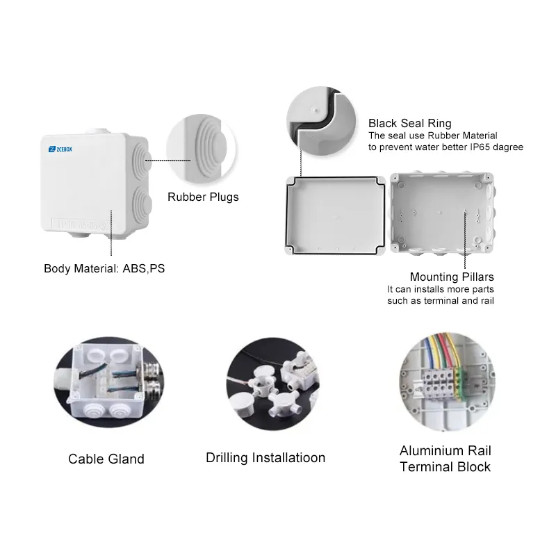 It is made of materials such as ABS and PS, with an elegant appearance and reliable performance. The cover and bottom are combined with screws. The weight of the plastic enclosure is a quarter of that of the iron enclosure. So the products can be easily transported and installed. All the products have anti-corrosion performance and good insulation performance.